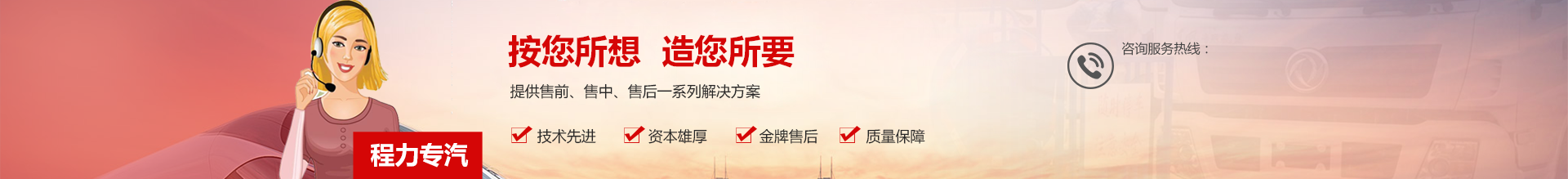 程力專用汽車股份有限公司銷售二十七分公司是定點(diǎn)生產(chǎn)各類專用汽車的專業(yè)廠家,大型專用汽車制造廠。國內(nèi)園林綠化、石油化工、市政環(huán)衛(wèi)、壓力容器專用汽車制造商。注冊商標(biāo)“程力威”牌,國家產(chǎn)品代碼:“CLW”。東風(fēng)、解放公司的重要合作伙伴,主要從事各類專用汽車的生產(chǎn)制造業(yè)務(wù),同時(shí)也銷售各大型廠家的整車及配件。公司擁有自行出口權(quán),產(chǎn)品占據(jù)大量國外市場,其主導(dǎo)品種有灑水車、油罐車、垃圾車、吸糞車、吸污車、自卸車、廂式貨車、半掛車、清障車、隨車吊、高空作業(yè)車、教練車、散裝水泥車、化工車、消防車、汽車配件、水泥攪拌車、牽引車等八大系列100多個(gè)品種車型。同時(shí)批發(fā)東風(fēng)、解放、楚風(fēng)各種二類底盤。